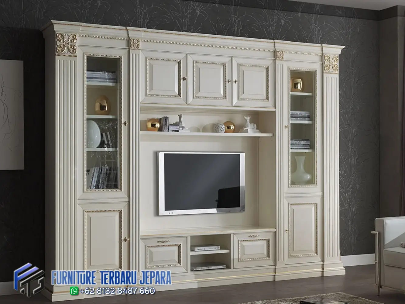 Kami siap membantu Anda mewujudkan Lemari Bufet TV Mewah Jepara Terbaru impian yang berkelas, fungsional, dan memikat. Langsung produksi dari Jepara dan siap kirim ke seluruh Indonesia.