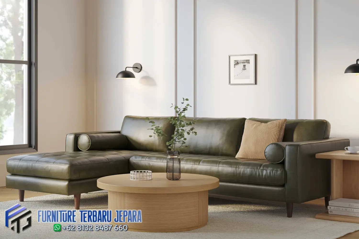Sofa Sudut Kulit Mewah Jati Jepara