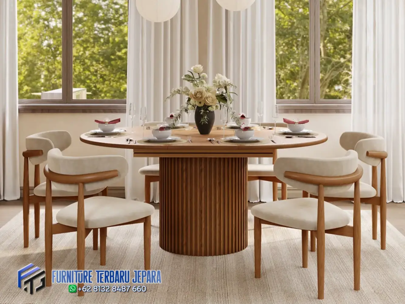 Bagikan informasi tentang Round Table Meja Makan Kayu Jati 6 Kursi Cafe Terbaru Jepara kepada teman atau kerabat Anda.