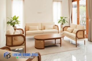 Model desainnya yang sederhana namun stylish membuatnya cocok untuk berbagai gaya dekorasi interior. Sofa Rotan Minimalis Kursi Tamu Jepara adalah pilihan yang tepat untuk menciptakan tampilan yang bersih dan elegan dalam ruang keluarga atau ruang tamu Anda. Dengan bentuk yang simpel dan garis yang bersih, Kursi Tamu Jepara memberikan kesan ruangan yang lebih teratur dan lapang. Selain itu, kepraktisan dan kenyamanannya juga menjadi daya tarik utama, membuatnya menjadi pilihan populer bagi banyak orang yang menginginkan furnitur yang fungsional namun tetap menarik secara estetika.