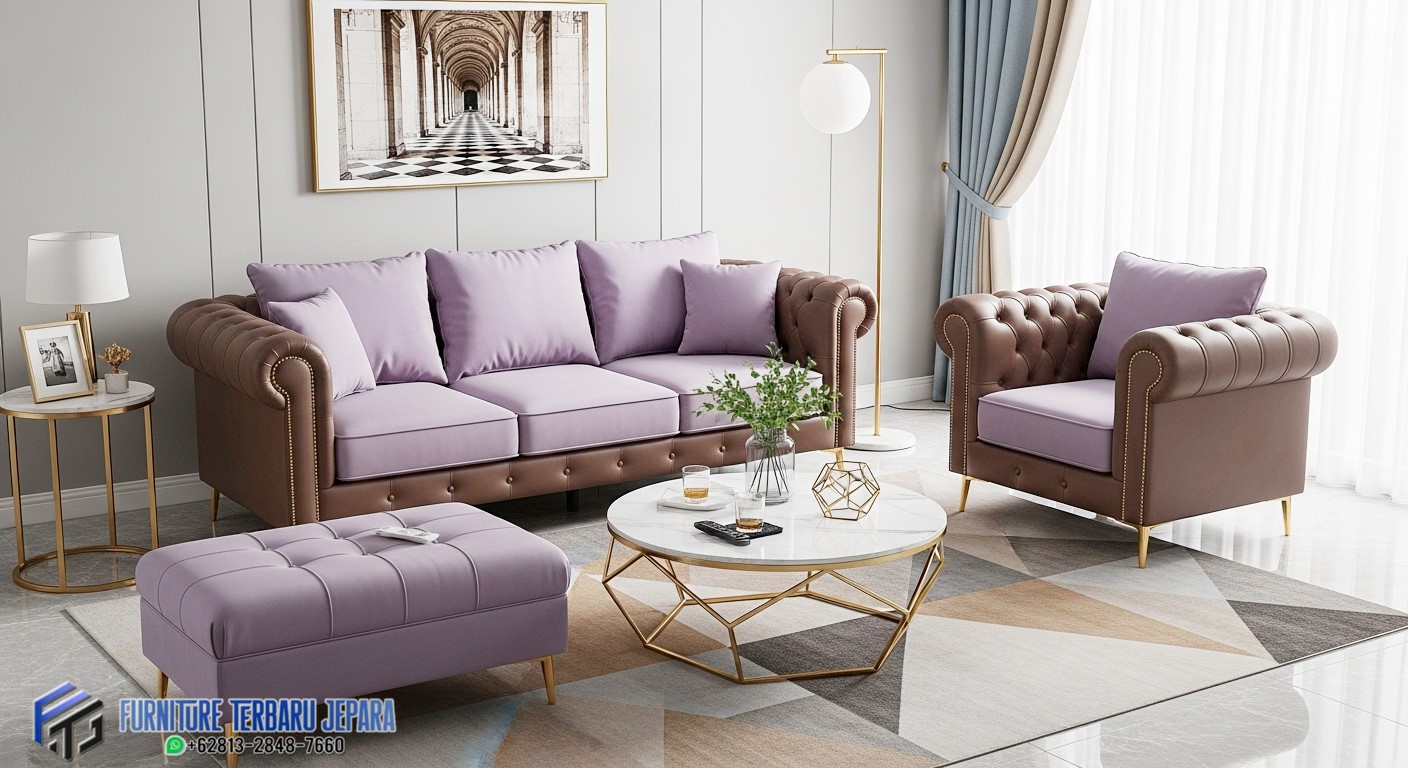 Kursi Sofa Tamu Chesterfield Meja Bulat Kaki Stainless