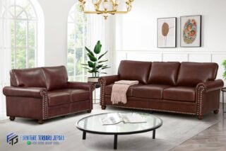 Set Sofa Tamu Kulit Klasik Eropa Modern Design